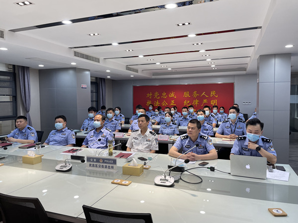 武昌區(qū)首義警務(wù)站民、輔警收看慶祝中國共產(chǎn)黨成立100周年大會。武昌區(qū)公安局供圖