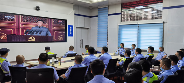 武昌區(qū)漢街派出所民、輔警收看慶祝中國共產(chǎn)黨成立100周年大會。武昌區(qū)公安局供圖