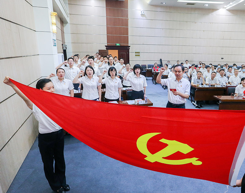 黃岡供電公司新黨員在黨旗前宣誓。豐俊攝