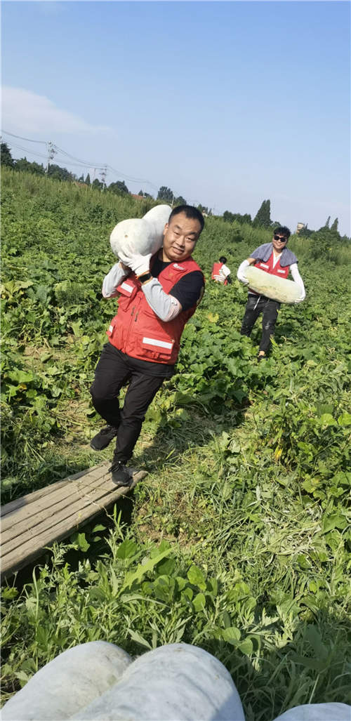 “我們是下午4點(diǎn)左右到達(dá)農(nóng)戶的地里,現(xiàn)場除了我們救援隊的十多人,還有東西湖區(qū)紅十字會的志愿者、劉天順老兵志愿服務(wù)團(tuán)、戰(zhàn)友集團(tuán)志愿者等共約30人,一起幫忙采摘冬瓜!狈晋Q介紹,冬瓜小的有30來斤,大的有一百三四十斤,大家一人肩扛一個,趕在天黑前,將地里的冬瓜全部裝車,由美慧物流的車隊,將捐贈物資送往河南。