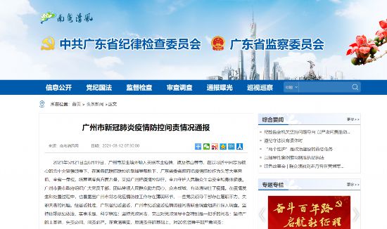 人民網(wǎng)北京8月12日電 (任一林)據(jù)廣東省紀(jì)委監(jiān)委網(wǎng)站消息,2021年5月21日至6月19日,廣州市發(fā)生境外輸入關(guān)聯(lián)本土疫情,波及佛山等市。