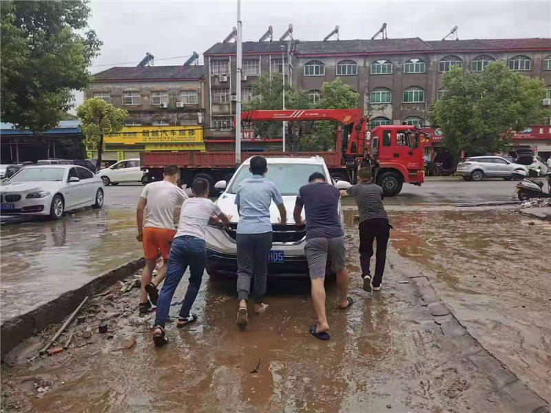 8月13日,人保財(cái)險(xiǎn)襄陽(yáng)分公司救援人員正在將水泡車從淤泥中推出。邱順安攝
