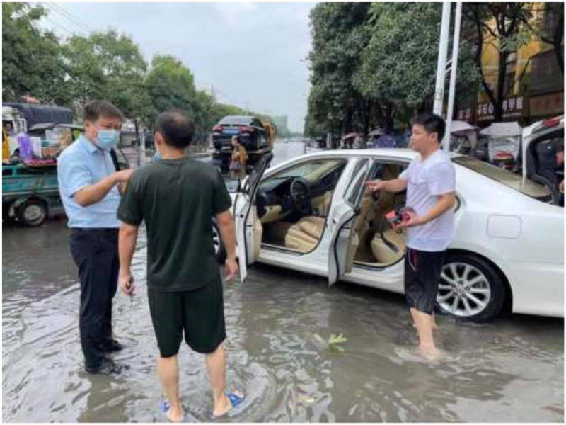 8月12日,平安財(cái)險(xiǎn)襄陽(yáng)中支車險(xiǎn)理賠人員正在對(duì)水淹車進(jìn)行查勘理賠。邱順安攝