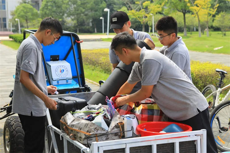 據(jù)了解,為了給新生們提供更加周到細致的服務,該校華耀追夢車隊利用暑假的時間,為辛苦研發(fā)出的巴哈賽車焊接了一個可以拖運行李的的小拖車。賽車的霸氣未改,卻搖身一變成為了可容納20個行李箱的行李運載車,完美地解決了新生們進校到入住宿舍的行李搬運問題。