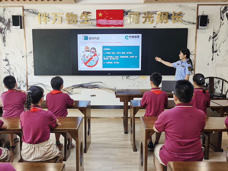 執(zhí)法人員走進(jìn)武漢市洪山區(qū)第三小學(xué),從源頭保護(hù)未成年人免受卷煙、電子煙侵害。
