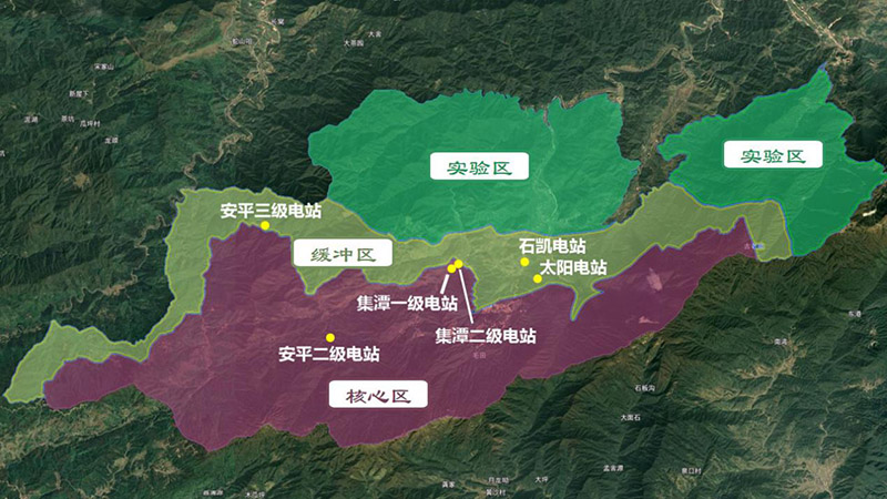 目前,保護(hù)區(qū)核心區(qū)和緩沖區(qū)內(nèi)共有6座小水電站,其中,核心區(qū)內(nèi)3座,分別為集潭一級(jí)、安平二級(jí)、集潭二級(jí)水電站;緩沖區(qū)內(nèi)3座,分別為太陽(yáng)、石凱、安平三級(jí)水電站。