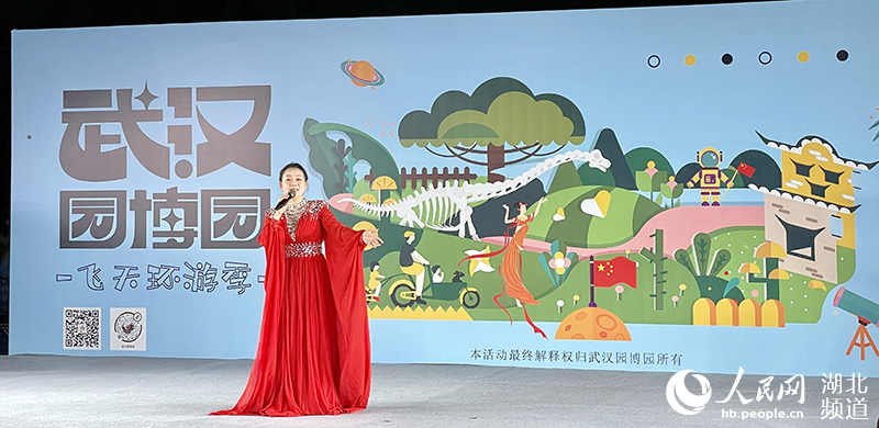 歌唱演員別丹在武漢園博園演唱紅歌。 人民網(wǎng) 張沛攝
