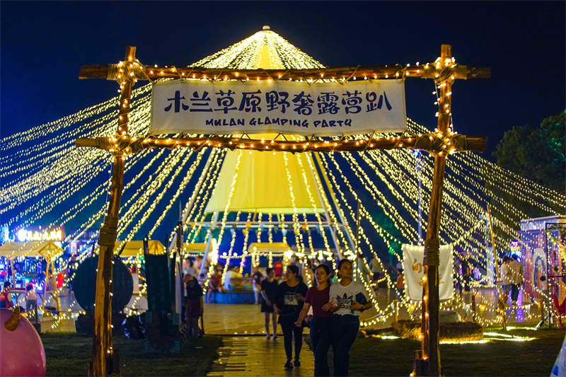 據(jù)景區(qū)負責(zé)人介紹,今年中秋節(jié),木蘭草原景區(qū)推出野奢露營趴活動,活動從中秋節(jié)一直持續(xù)到10月底,據(jù)了解,木蘭草原景區(qū)“夜草原”夜游品牌活動已持續(xù)6年,其中搭帳篷露營已經(jīng)成為木蘭草原夜游中的重點體驗項目;今年中秋,景區(qū)斥資三百多萬對帳篷露營區(qū)進行氛圍打造:定制10米高的圓錐形帳篷及8米長的月球供游客拍照打卡,天幕帳篷下烤肉,吃燒烤賞煙花,看露天電影和篝火表演……除了別具一格的野奢露營活動,木蘭草原景區(qū)還有騎馬射箭、網(wǎng)紅小火車、激流勇進、凌波飛渡、懸崖秋千等25個游樂項目體驗。