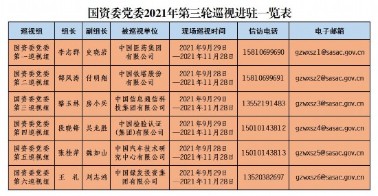 國資委:巡視組進(jìn)駐6家央企開展巡視 公布聯(lián)系方式