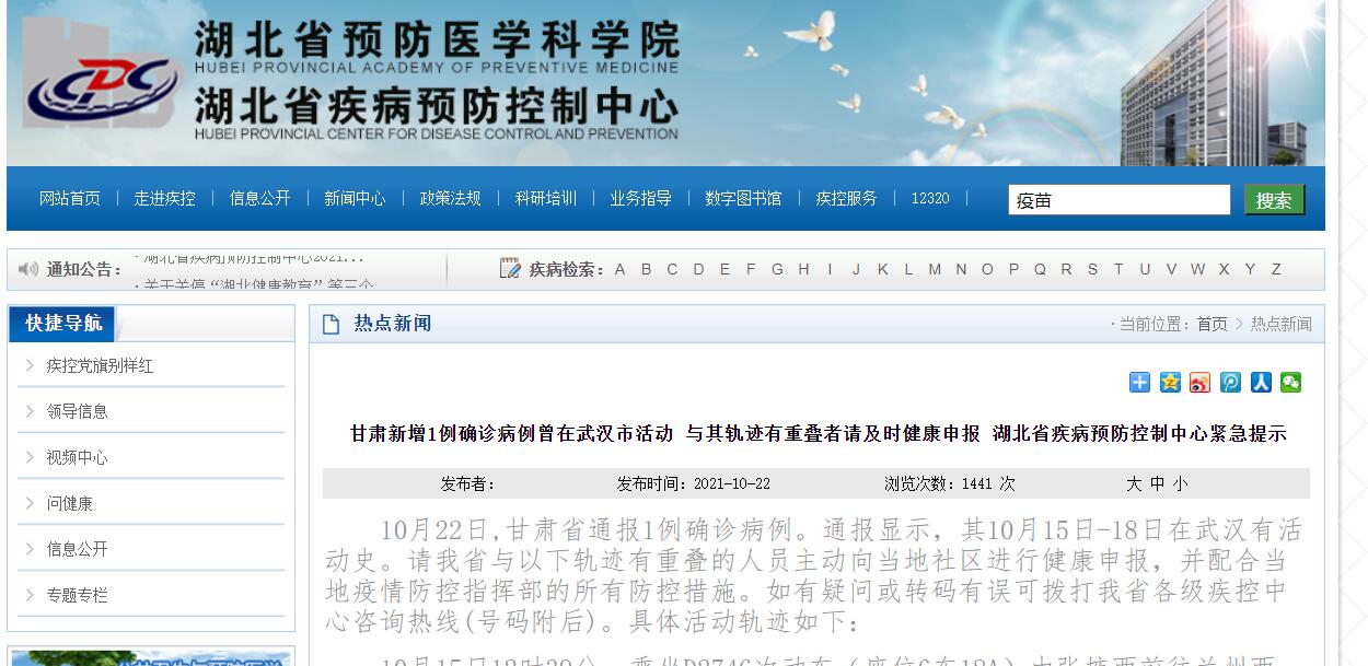 湖北疾控緊急提示:甘肅新增1例確診病例曾在武漢市活動(dòng) 與其軌跡有重疊者請(qǐng)及時(shí)健康申報(bào)