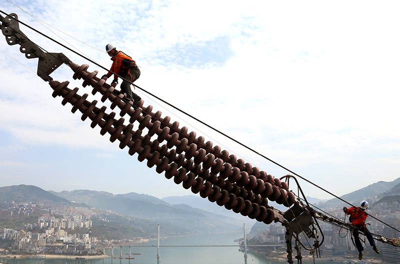 國網(wǎng)湖北檢修公司秋檢期間對瓷瓶串進行更換,助力寒潮期間電網(wǎng)可靠供電。黎金勇攝