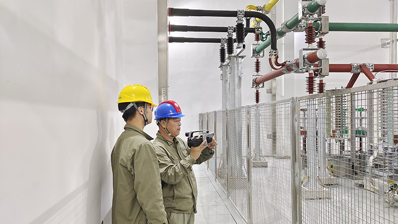 500千伏興隆變電站運檢人員在融冰裝置調(diào)試驗收期間,定時對融冰設備進行紅外測溫,讓設備更抗凍。袁雨薇攝