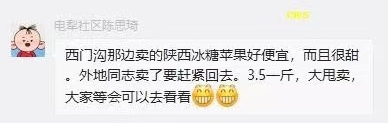 陜西小夫妻的蘋果壓在手上,也壓在社區(qū)網(wǎng)格員們心上。在熊繁的帶動(dòng)下,社區(qū)工作人員不僅幫著買,還紛紛當(dāng)起了“代言人”,在朋友圈打出了“銷售廣告”。