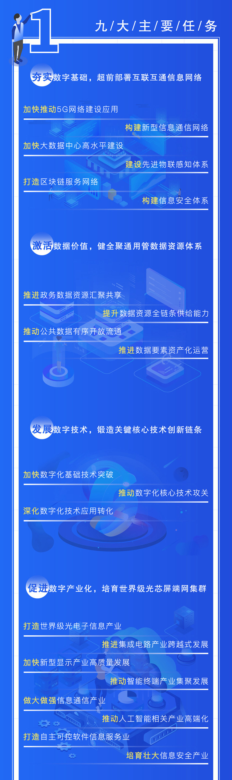 《規(guī)劃》著重布局了“十四五”期間湖北省數(shù)字經(jīng)濟(jì)發(fā)展的九大主要任務(wù)、十大實(shí)施工程,同時(shí)制定六大保障措施,強(qiáng)化“數(shù)字湖北”統(tǒng)一領(lǐng)導(dǎo)與統(tǒng)籌組織制度,堅(jiān)持全省數(shù)字經(jīng)濟(jì)發(fā)展一張藍(lán)圖干到底。
