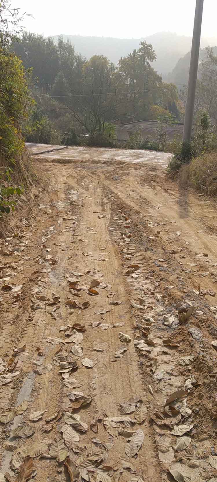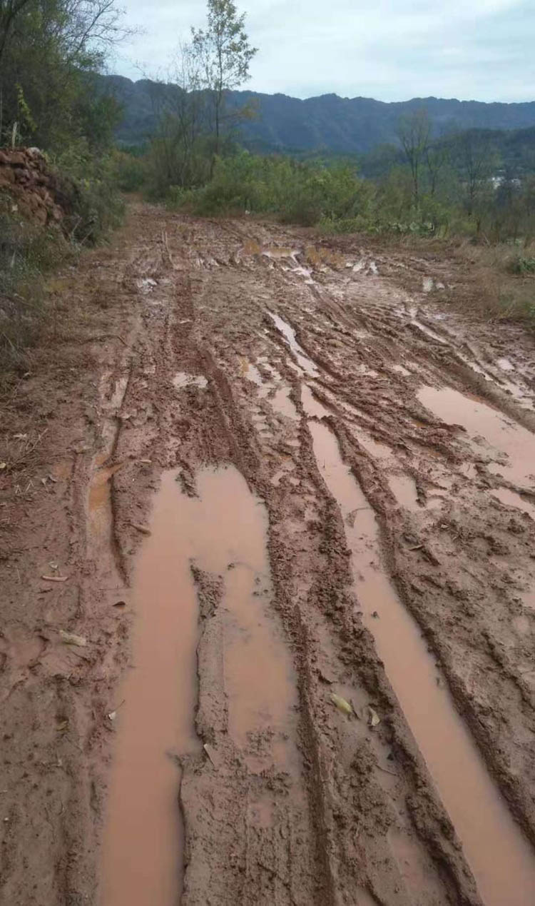 大悟縣豐店鎮(zhèn)九房溝村尖山二組未硬化的道路。網(wǎng)友供圖