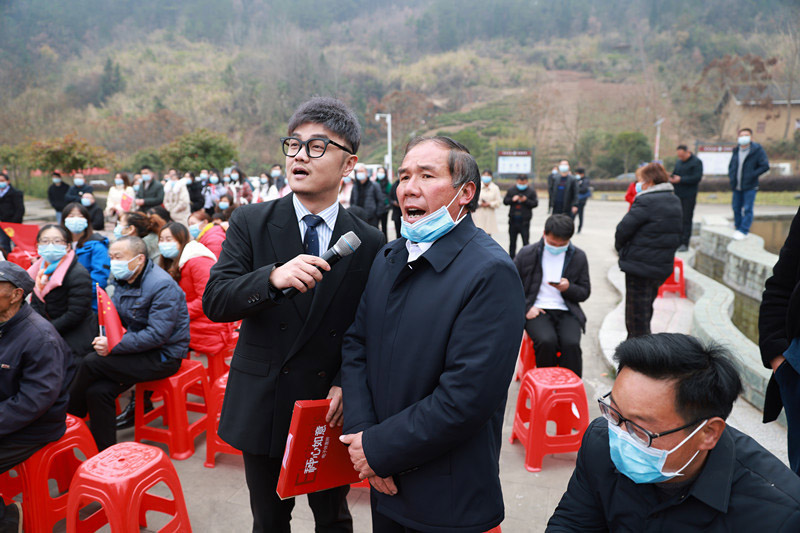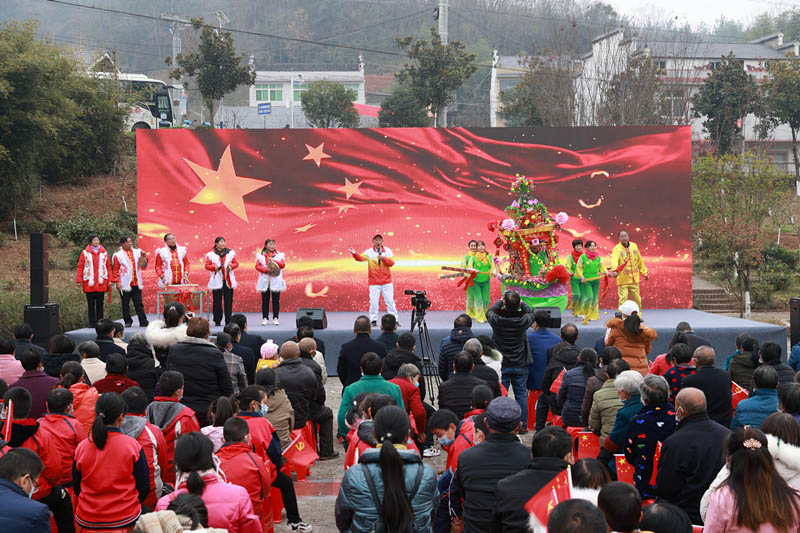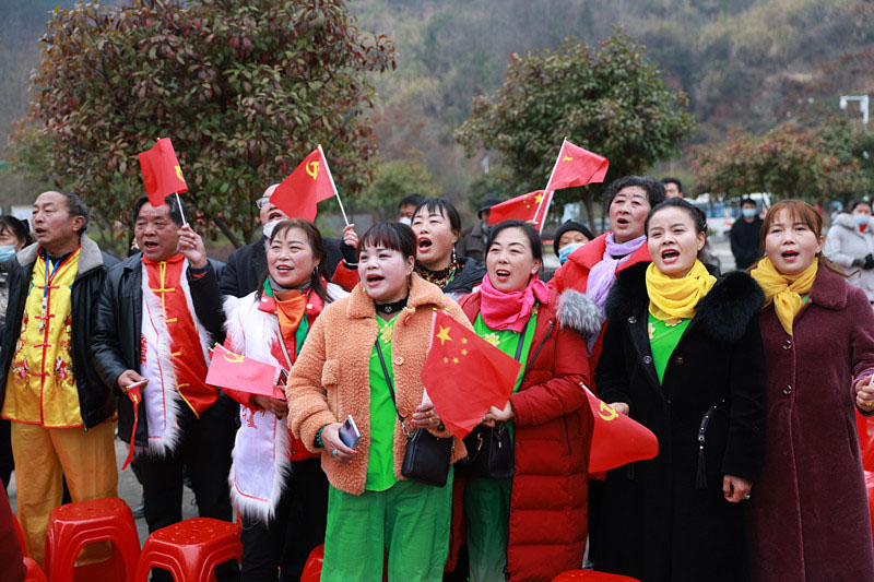 “沒(méi)有共產(chǎn)黨就沒(méi)有新中國(guó),沒(méi)有共產(chǎn)黨就沒(méi)有新中國(guó)……”12月8日下午,在湖北省十堰市竹山縣寶豐鎮(zhèn)龍井村村頭廣場(chǎng)上,800多名黨員群眾齊聲高唱,歌聲嘹亮。一場(chǎng)別開生面的音樂(lè)思政課《六中全會(huì)精神進(jìn)農(nóng)家鄉(xiāng)村振興音樂(lè)行》在這里舉行。