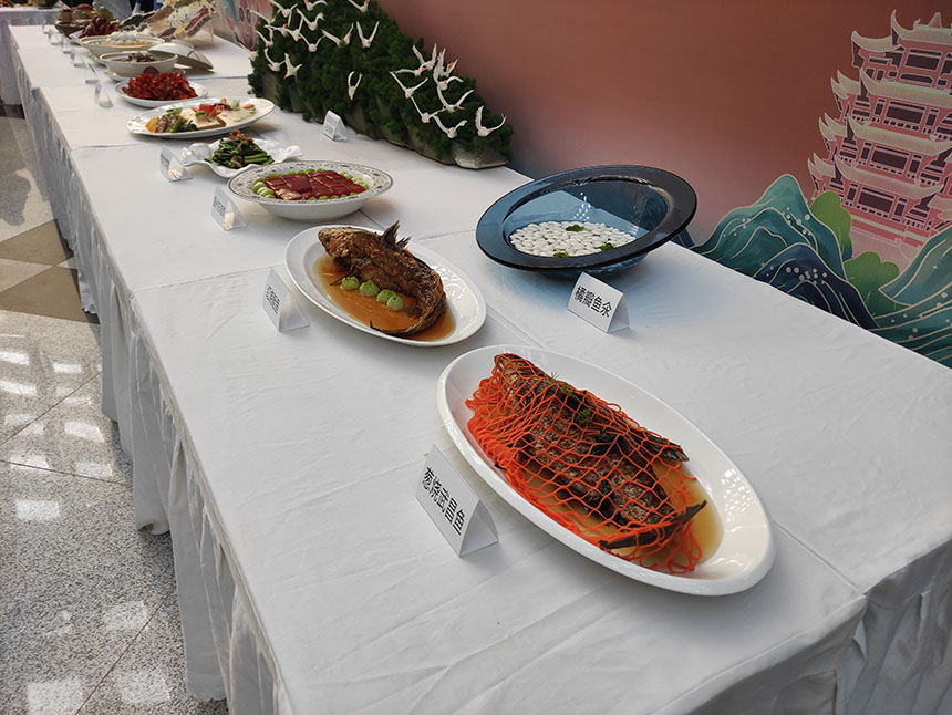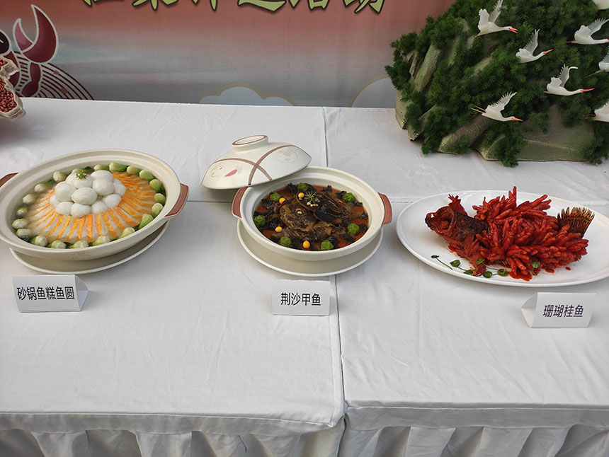 除此之外,現(xiàn)場觀眾還可以一覽蔥燒武昌魚、蓮藕排骨湯、沔陽三蒸、荊沙甲魚等具有濃郁地方特色的傳統(tǒng)楚菜菜品,找回記憶里的楚菜味道。