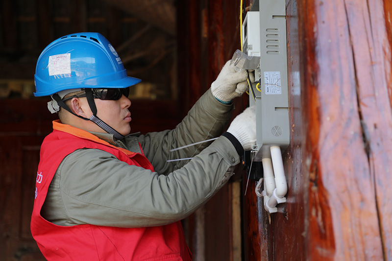 拆舊、裝新、布線……施工人員熟練地為村民們整改好線路,并貼心地幫助他們掛上紅燈籠,貼上對(duì)聯(lián)和“!弊。
