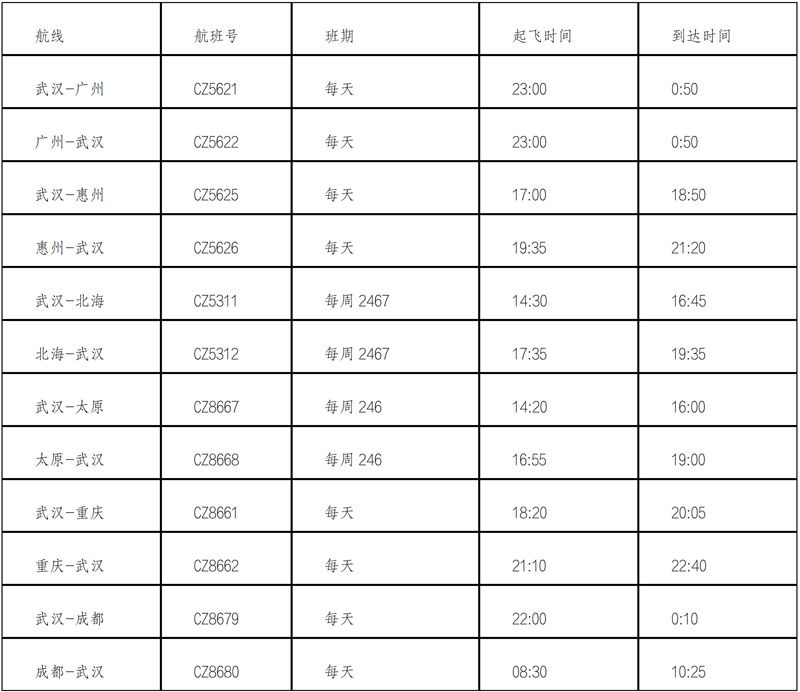 2022年春運(yùn)開(kāi)始 南航在漢出港航班量將增至每天100班