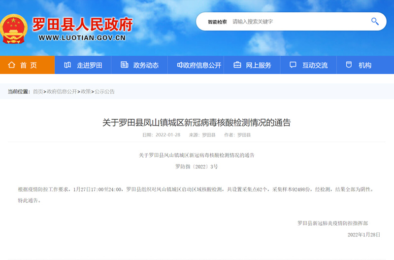另?yè)?jù)該縣1月27日發(fā)布信息,2022年1月27日,羅田縣在對(duì)省外返羅人員排查過(guò)程中發(fā)現(xiàn)1例核酸檢測(cè)陽(yáng)性病例。目前,已啟動(dòng)相關(guān)應(yīng)急處理程序,疫情處在可控范圍。后續(xù),縣防控指揮部將及時(shí)發(fā)布相關(guān)信息。
