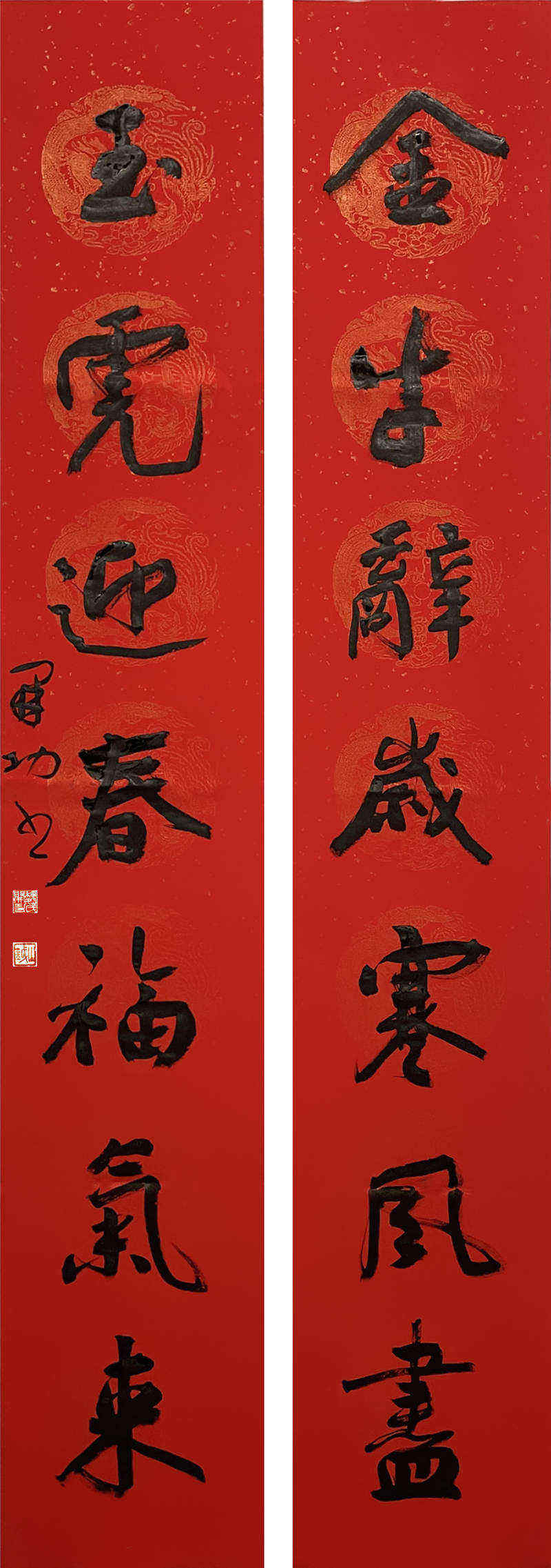魏開功青年時代即已顯露出其書法藝術才華,而且親炙于吳丈蜀、陳方既兩位大家,1987年被推選為洪湖市書法家協會主席,1998年在湖北省美術館舉辦過個人書法展。其書法主要臨習漢魏諸碑以及王羲之、顏真卿、米芾、王鐸、康有為、王蘧常等大家碑帖,尤擅“康(有為)體”。“古墨輕磨滿幾香,硯池新浴燦生光。”魏開功筆寫春秋,揮斥方遒,無論是白紙黑字之間,還是日常的瑣碎生命體驗,他總能筆潤漢唐魏晉,墨生風云,在書法與詩意之間手心兩忘,有如禪者的綜逸,來去灑脫。在惆悵與希翼,困頓與探索,蒼憫與堅守之間,魏開功灌注在作品中的精神氣象是出神的,形象化的,回旋進退,莫不中節(jié),總是在颯落、豪氣和厚重中騰一種大家風范。魏開功亦一片丹心有情懷,他熱衷公益,舉辦慈善拍賣資助貧困學子,策劃大型展賽,積極參與書法藝術的社會實踐,涉獵廣泛且成就斐然。