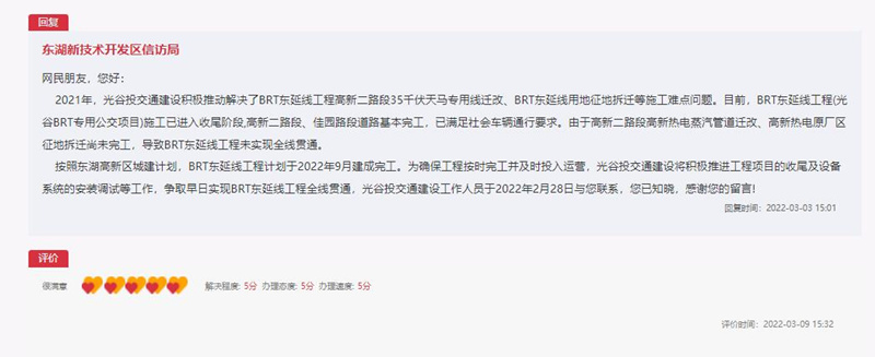 辦得好|武漢BRT延長線何時開通?網(wǎng)友對回復(fù)“很滿意”