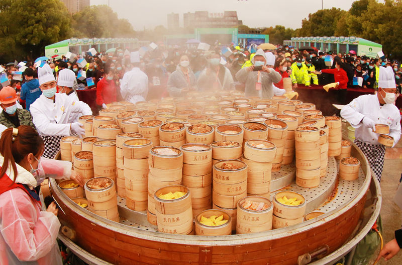 人民網(wǎng)天門3月25日電 (張雋)3月25日上午,2022年湖北(天門)第三屆陸羽茶文化節(jié)暨第六屆蒸菜美食文化節(jié)(以下簡稱“兩節(jié)”)在湖北天門拉開帷幕。隨后,直徑3米、高1.5米的“天下第一籠”開揭,熱氣騰騰的美味蒸菜盛宴呈現(xiàn)在大家眼前。