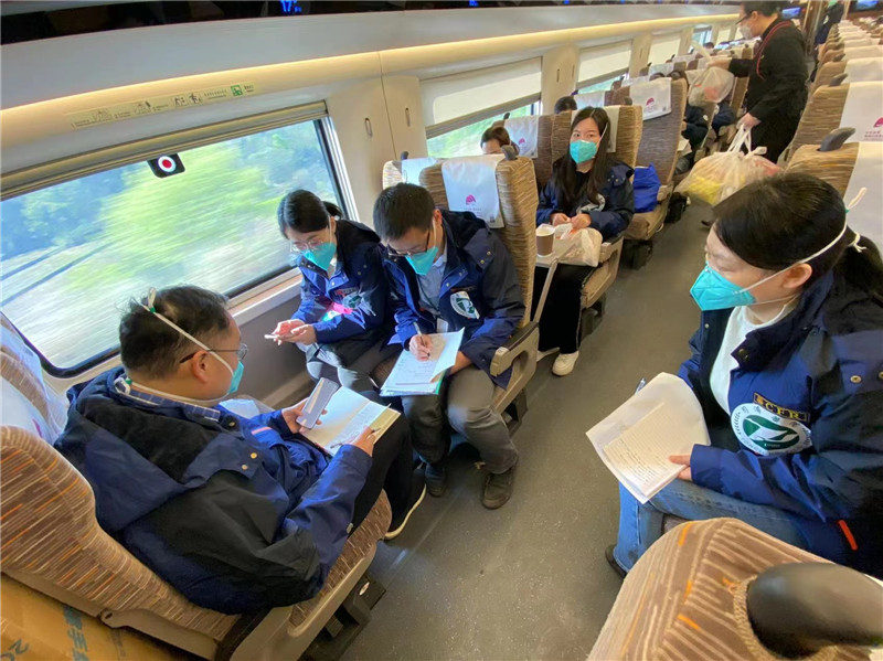 為了能最快地進入工作狀態(tài),醫(yī)護人員在火車上復習操練,反復觀看防護服的穿脫視頻,院感專家再次進行強化培訓,強調口罩是生命線,手衛(wèi)生是關鍵。