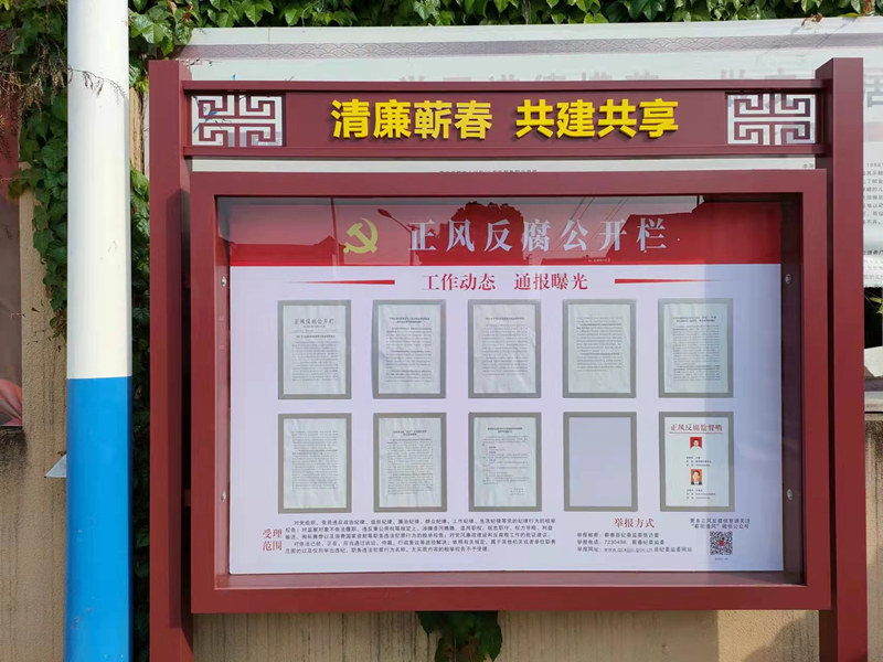今年3月份,蘄春縣紀(jì)委監(jiān)委啟動(dòng)紀(jì)檢監(jiān)察信訪舉報(bào)“三無”(無重復(fù)訪、無越級(jí)訪、無群體訪)鄉(xiāng)村創(chuàng)建活動(dòng),為更好地發(fā)揮正風(fēng)反腐公開欄作用,該縣紀(jì)委監(jiān)委對(duì)603塊正風(fēng)反腐公開欄進(jìn)行了全覆蓋提檔升級(jí)。不僅對(duì)公開欄版面進(jìn)行了更為科學(xué)的設(shè)計(jì),將“通報(bào)曝光”“工作動(dòng)態(tài)”等固定板塊增加到10個(gè)頁面,并采用免打孔磁性展示貼張貼公示內(nèi)容,外觀更加干凈整齊,內(nèi)容更加一目了然。同時(shí),新增“正風(fēng)反腐監(jiān)督哨”板塊,直接公示鄉(xiāng)鎮(zhèn)紀(jì)委(派出紀(jì)檢監(jiān)察組)干部和基層支部紀(jì)檢委員的照片、姓名、職務(wù)、電話,使群眾反映問題更直接、更快捷。
