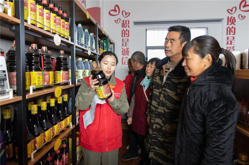2月24日,國(guó)網(wǎng)湖北電力共產(chǎn)黨員服務(wù)隊(duì)正在秭歸縣首家“電力愛(ài)心超市“為村民介紹商品。鄂殿攝