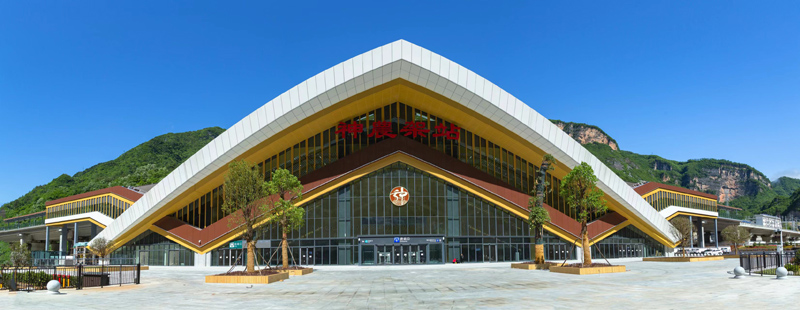 神農(nóng)架高鐵站位于新華鎮(zhèn),主體建筑局部地下1層,地上兩層。站臺規(guī)模為兩臺4線,站房容量600人,設(shè)計年發(fā)送量90萬人次。