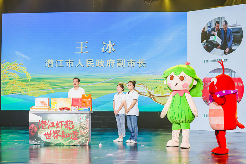 潛江市人民政府副市長王冰現場推介潛江蝦稻米。主辦方供圖