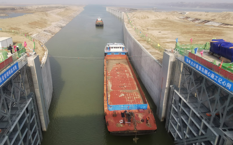 2020年1月12日,漢江雅口航運樞紐船閘首次試通航成功。襄陽市交通運輸局供圖