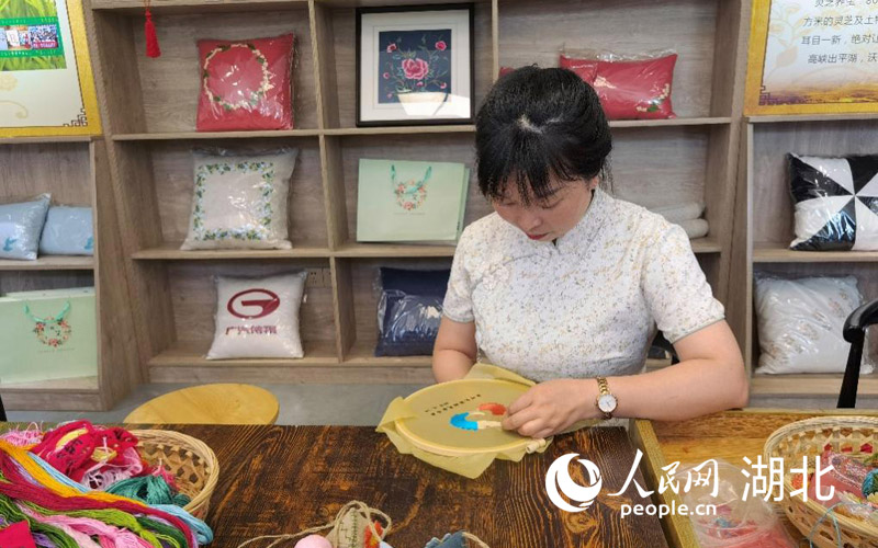 2012年,村里的創(chuàng)業(yè)帶頭人謝蓉,牽頭組建宜昌繡女工藝品專業(yè)合作社,后來成立宜昌沁邑民俗文化有限公司,傳承峽江地區(qū)非遺技藝“牽花繡”,發(fā)展手工刺繡產(chǎn)品。習(xí)近平總書記來視察的時(shí)候,謝蓉曾在村里的電商服務(wù)站向總書記匯報(bào)自己帶領(lǐng)移民婦女創(chuàng)業(yè)增收的情況。