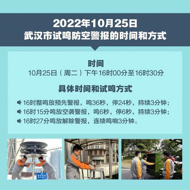 2022年10月25日武漢市試鳴防空警報(bào)的時(shí)間和方式