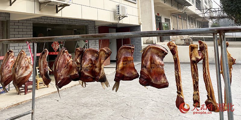 村民在屋前晾曬的臘魚臘肉。人民網(wǎng) 關喜艷攝