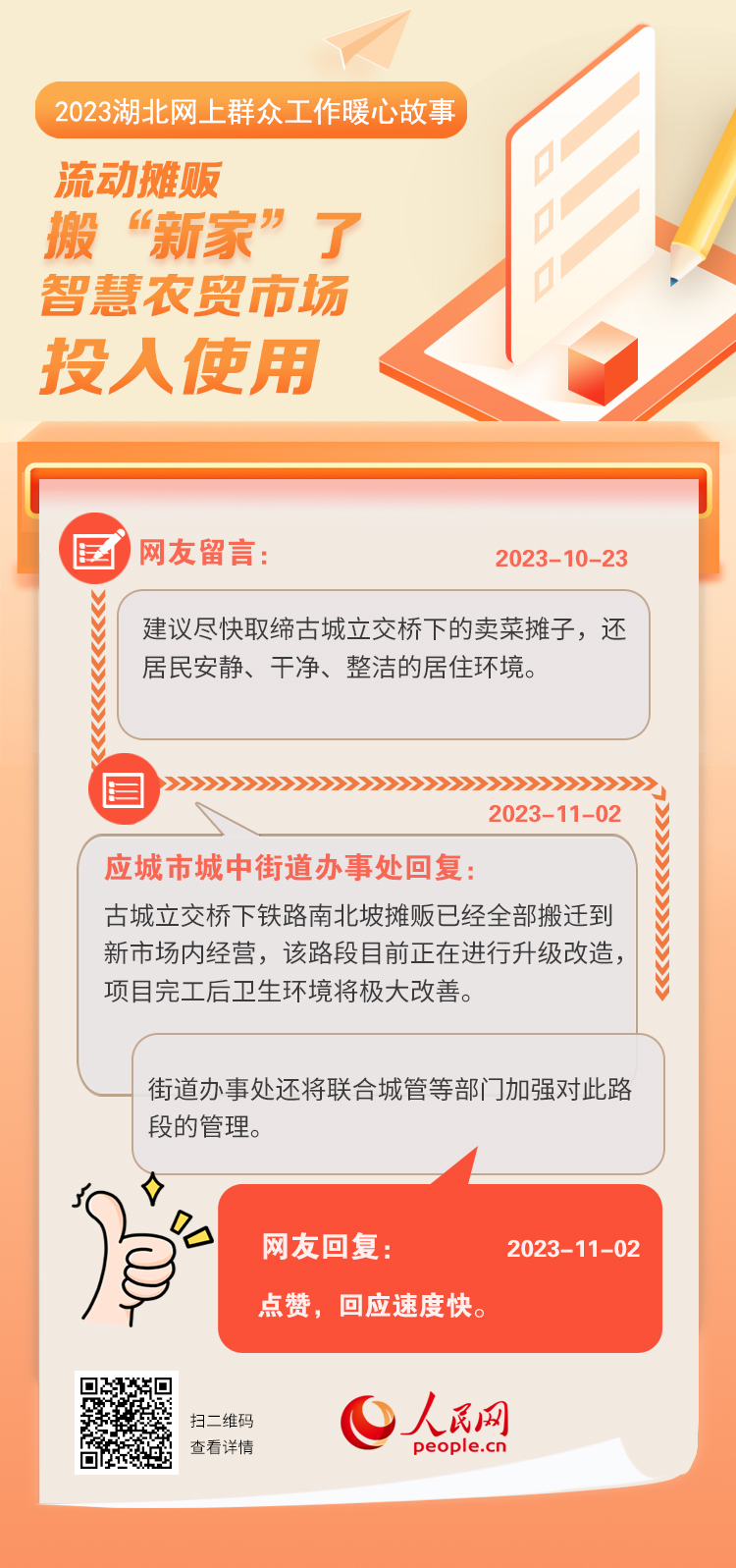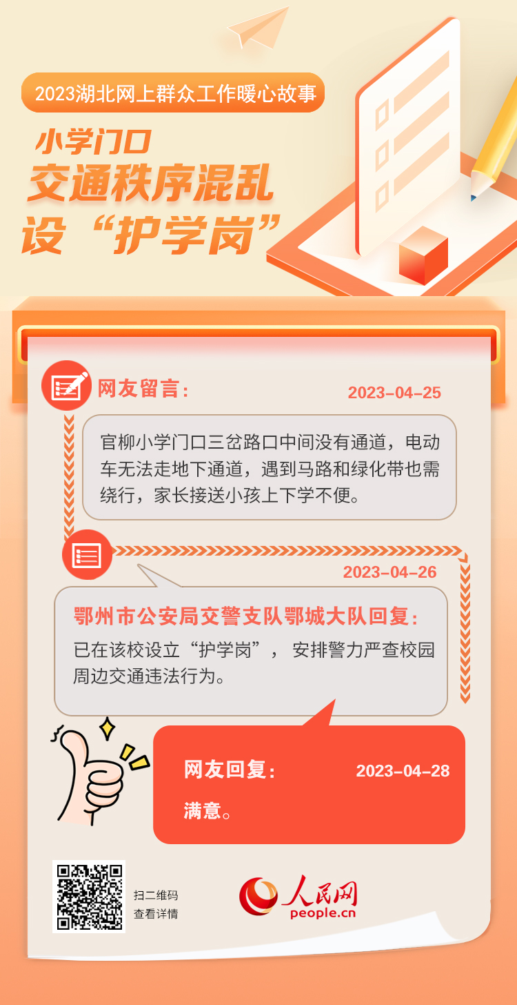 畫好網(wǎng)上網(wǎng)下“同心圓”,架好干群互動(dòng)“連心橋”。2023年,湖北各地各部門通過人民網(wǎng)“領(lǐng)導(dǎo)留言板”共回復(fù)群眾急難愁盼問題11365件,滿意度86.0%。新的一年,人民網(wǎng)湖北頻道推出特別策劃——《2023湖北網(wǎng)上群眾工作暖心故事》,盤點(diǎn)過去一年湖北通過網(wǎng)絡(luò)走好群眾路線的部分事跡,讓群眾獲得滿滿幸福感。