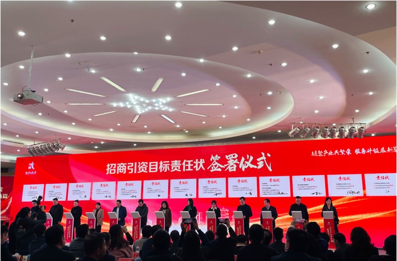 在2024年度武昌區(qū)招商引資動員大會上,各部門、街道相關(guān)負(fù)責(zé)人簽署招商引資目標(biāo)責(zé)任狀。