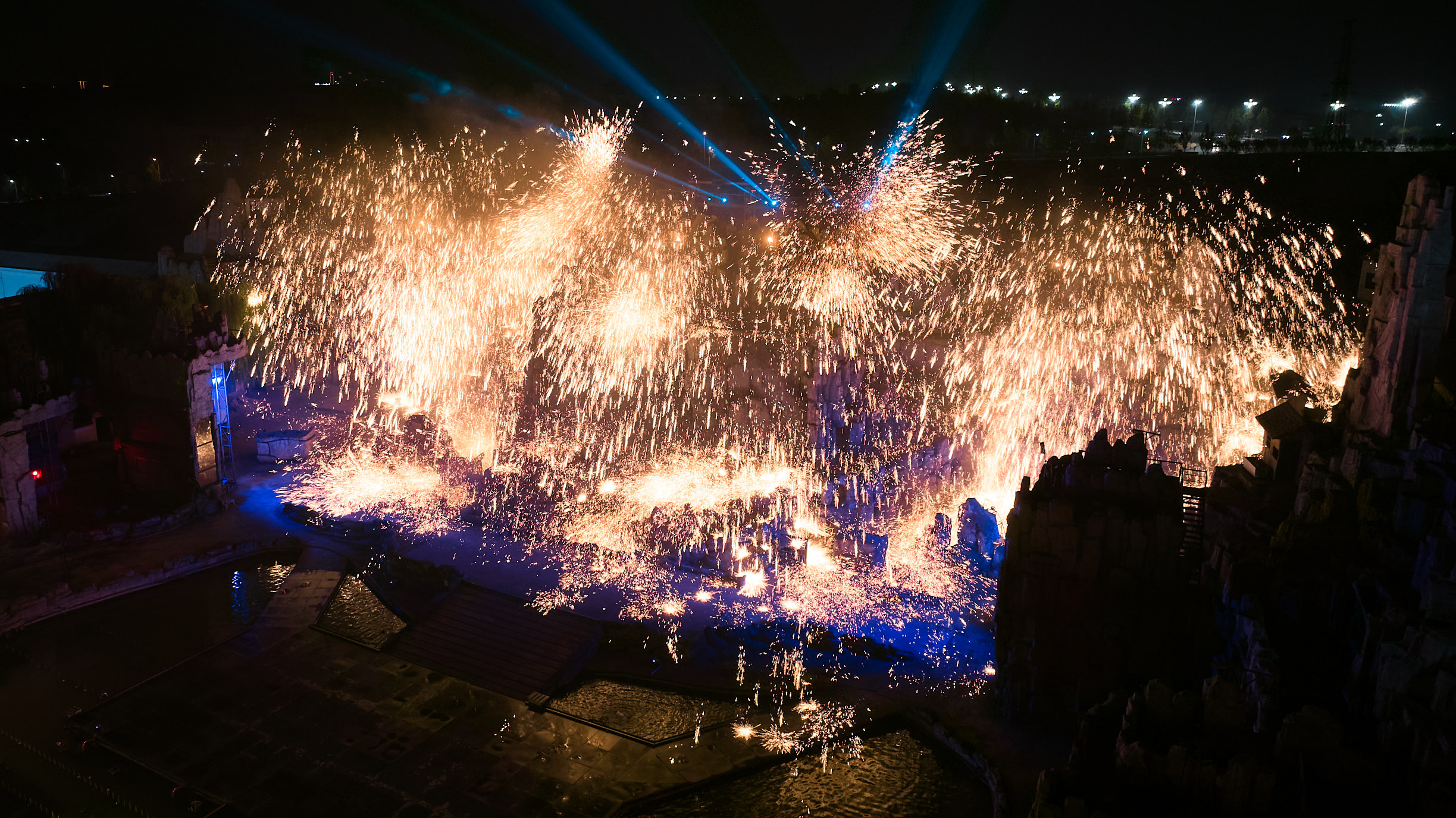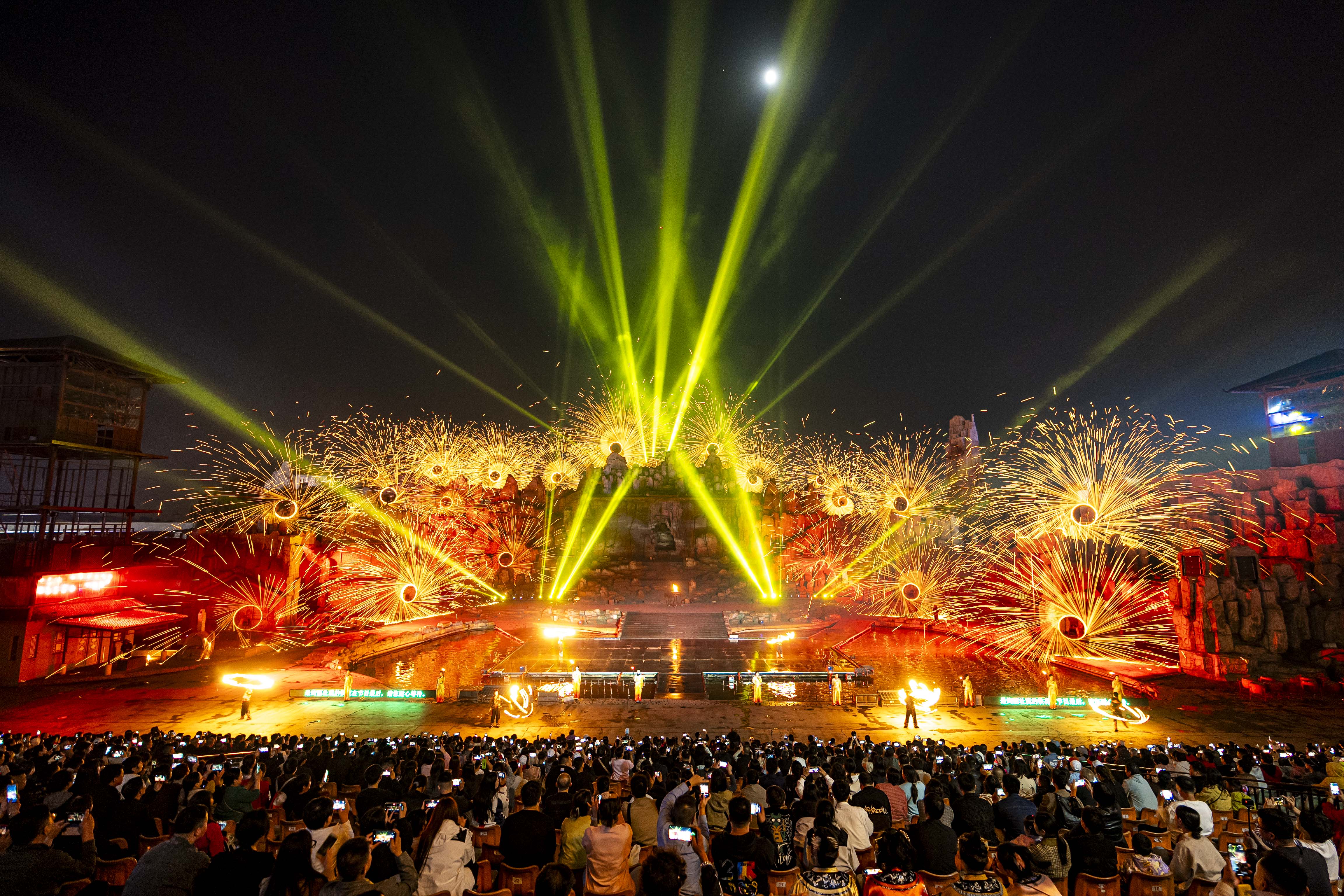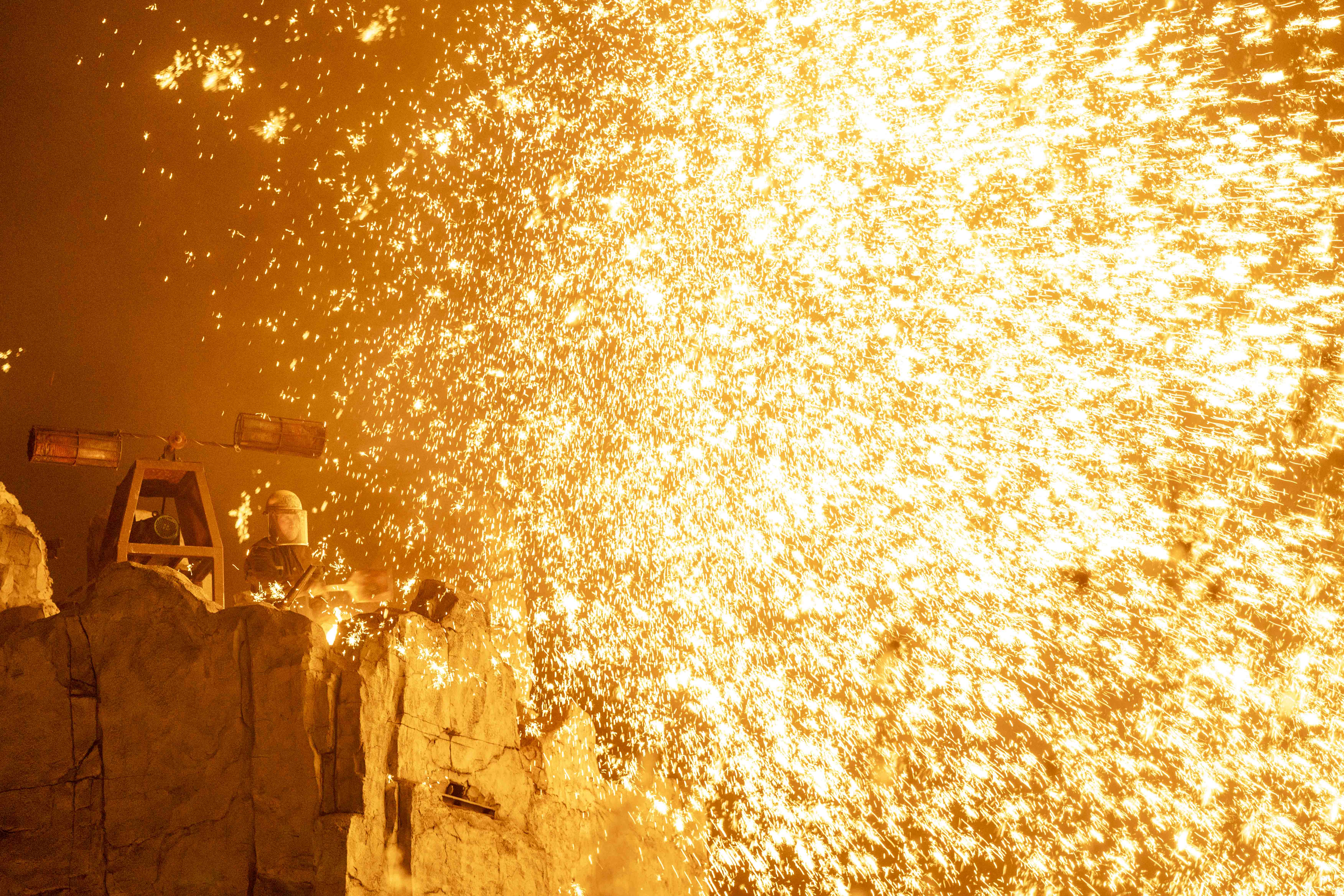 司徒小鎮(zhèn)《千年鐵魂》實景演出現(xiàn)場,鐵花飛舞。